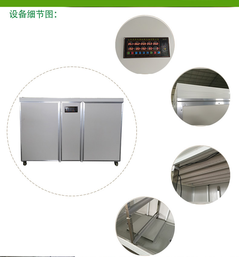 對來本廠購機的客戶,我們專車到車站接送,并報銷一部分來回火車票、汽車票,在本工廠參觀學習期間,免費提供食宿,我們以“我誠信、你放心”經(jīng)營理念與客戶建立和諧的、共發(fā)展共榮辱的合作關(guān)系,讓我們的產(chǎn)品去說話! 我工廠內(nèi)擁有大型豆芽生產(chǎn)車間,常年生產(chǎn)豆芽和特色芽苗菜,每天出產(chǎn)豆芽4000斤以上,銷往青州孟七農(nóng)貿(mào)市場和各大及學校食堂,歡迎各界朋友來我處參觀考察,將現(xiàn)場試機和免費培訓生產(chǎn)技術(shù)。 工廠內(nèi)大型培育基地,免費培訓30多種芽苗菜生產(chǎn)技術(shù)! 歡迎來我們工廠考察、學習、合作、共贏~! 1、型號參數(shù): 產(chǎn)品型號:YJ-1200A (該機器有 一機單控、一機雙控、一機四控) 電源電壓(V):220 總功率(KW):3 總?cè)萘?KG):2400 日產(chǎn)量(KG):600 日耗電(度):28 日耗水(m3):7 外形尺寸(m):4.6×1.4×1.9 (長×寬×高) 整機重量(KG):720 機內(nèi)有80個 育芽箱 2、主要用途: 廣泛適用于中型戶
